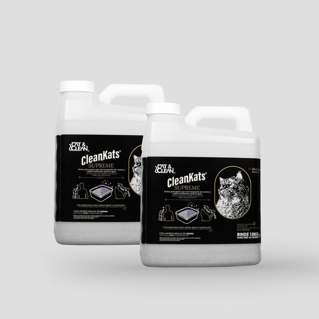 Pack perfecto para tu michi: limpiador desinfectante para su arenero, arena aglutinante sin fragancia y perlas aromatizantes para mayor frescura